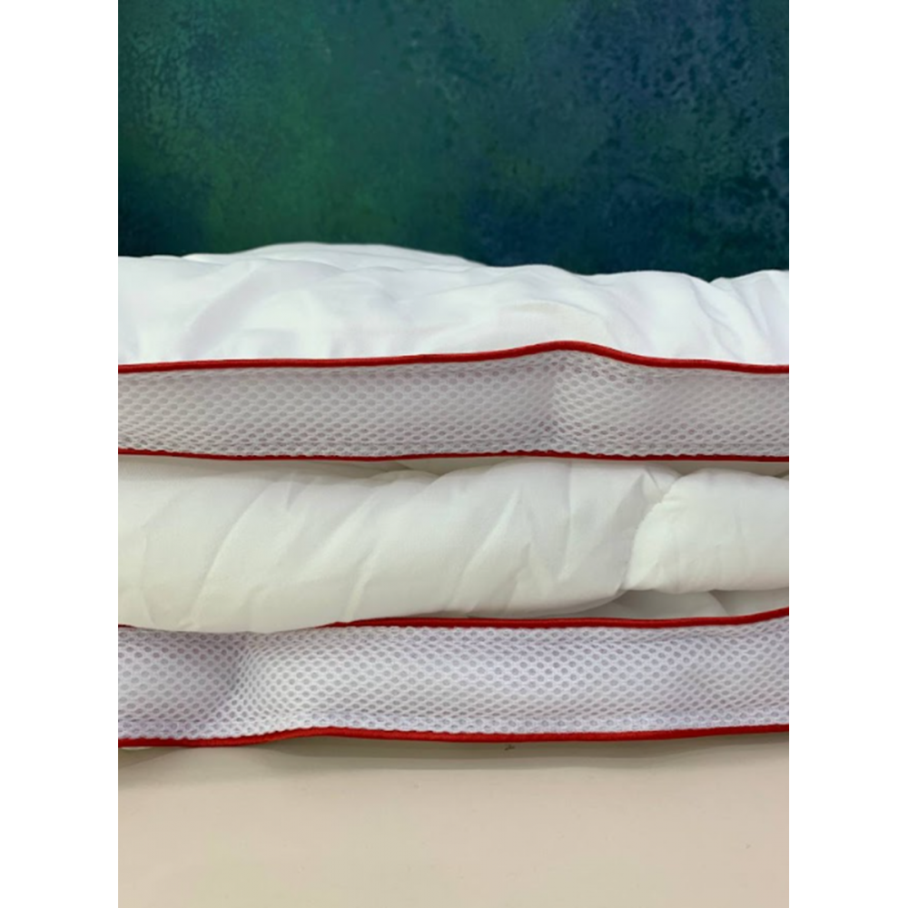 Гипоаллергенное, легкое, пропускающее воздух, не сбивается, обладает функцией терморегуляции (воздушный чехол по бокам изделия)