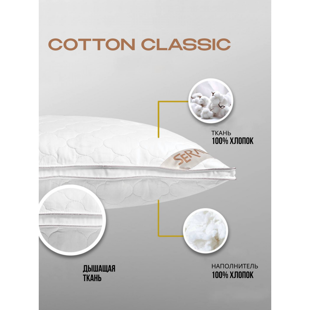 Подушка Cotton Classic – это естественный комфорт и забота о вашем сне. Наполненная 100% хлопком, она дарит мягкость и тепло и создаст ощущение невесомости .Хлопок – одно из древнейших и самых экологичных текстильных волокон, требующее минимальной химической обработки при выращивании и производстве.Огромным плюсом изделий из него является то, что в них не могут завестись постельные клещи и другие организмы. Антиаллергенные свойства, возможность легкой стирки, не впитывание посторонних запахов, с условиями повышенной мягкости создают условия комфортного сна и отдыха. Выбирая Cotton Classic, вы выбираете натуральность, уют и здоровый сон.