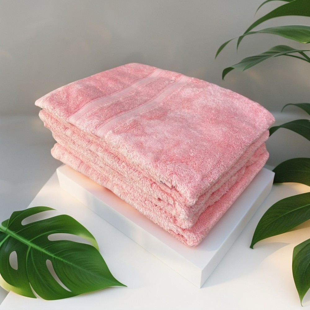 Материал - махровая ткань, смесь высококачественного хлопка и бамбука. Банные полотенца с добавлением бамбукового волокна не вызывают раздражения и сухости и обладают натуральными антимикробными свойствами. Полотенце отлично впитывает влагу и быстро сохнет, долго сохраняет свою фактуру, плотность и яркость цвета.
