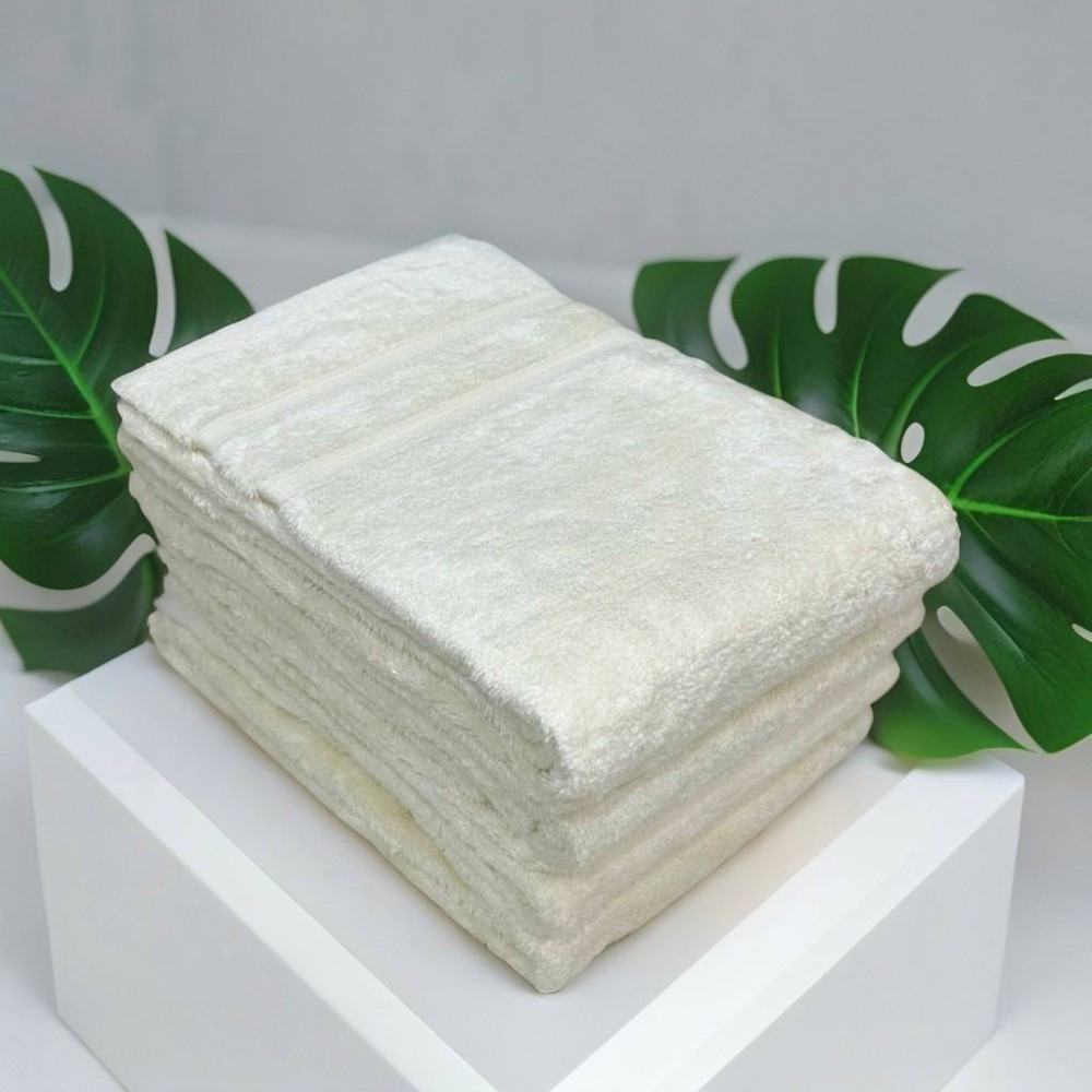 Материал - махровая ткань, смесь высококачественного хлопка и бамбука. Банные полотенца с добавлением бамбукового волокна не вызывают раздражения и сухости и обладают натуральными антимикробными свойствами. Полотенце отлично впитывает влагу и быстро сохнет, долго сохраняет свою фактуру, плотность и яркость цвета.