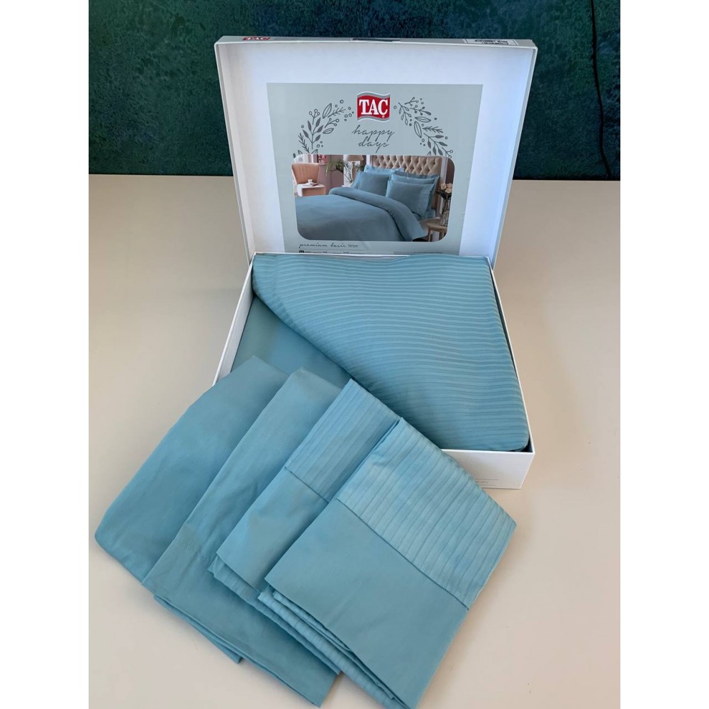 Постельное белье ТАС 2сп. евро премиум страйп-сатин Basic аквамарин