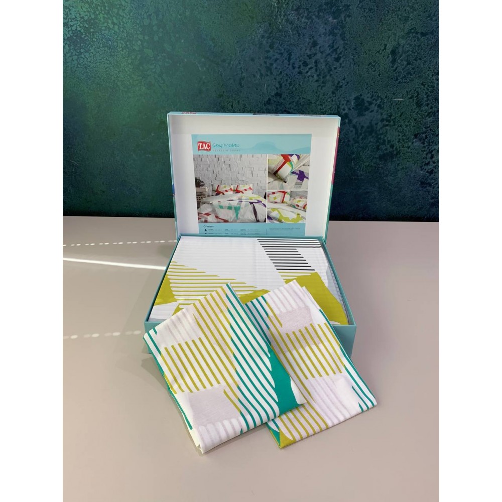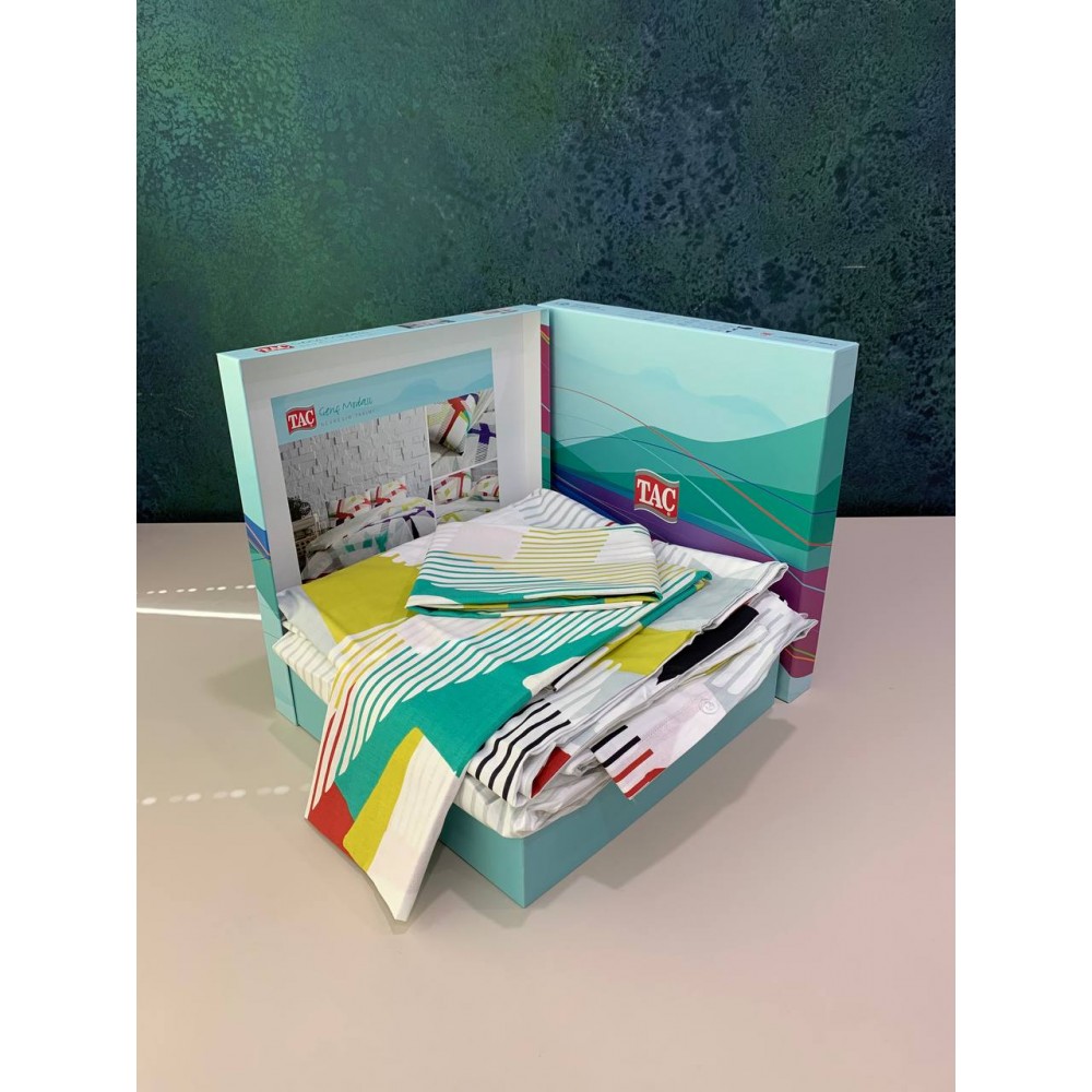 Турецкое постельное белье из коллекции TAC RANFORCE произведено из лучшего 100% хлопка. Ранфорс очень практичный, долговечный, гладкий и прочная, поскольку изготовлен из более тонких нитей. Постельное белье из ранфорса (материала полотняного плетения нитей) не требует специального ухода: легко стирается и гладится, приятное к телу и мягкое на ощупь, с отличными гигиеническими свойствами (летом создает прохладу, зимой-согревает), с изысканными и стильными дизайнами, отличающимися повышенной цветоустойчивостью. Комплектация изделия: пододеяльник 200х220 (на пуговицах), простыня (на резинке) 160х200, наволочки 50х70 - 2 шт (без канта), плотность ткани 145 г/м2. Упаковка: подарочная коробка.