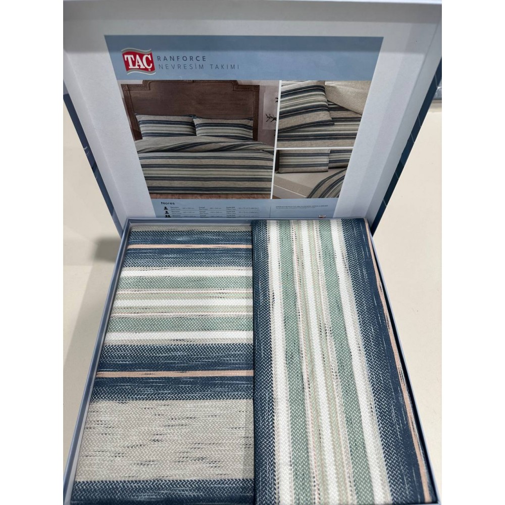 Турецкое постельное белье из коллекции TAC RANFORCE произведено из лучшего 100% хлопка. Ранфорс очень практичный, долговечный, гладкий и прочная, поскольку изготовлен из более тонких нитей. Постельное белье из ранфорса (материала полотняного плетения нитей) не требует специального ухода: легко стирается и гладится, приятное к телу и мягкое на ощупь, с отличными гигиеническими свойствами (летом создает прохладу, зимой-согревает), с изысканными и стильными дизайнами, отличающимися повышенной цветоустойчивостью. Комплектация изделия: пододеяльник 200х220 (на пуговицах), простыня (на резинке) 160х200, наволочки 50х70 - 2 шт (без канта), плотность ткани 145 г/м2. Упаковка: подарочная коробка.