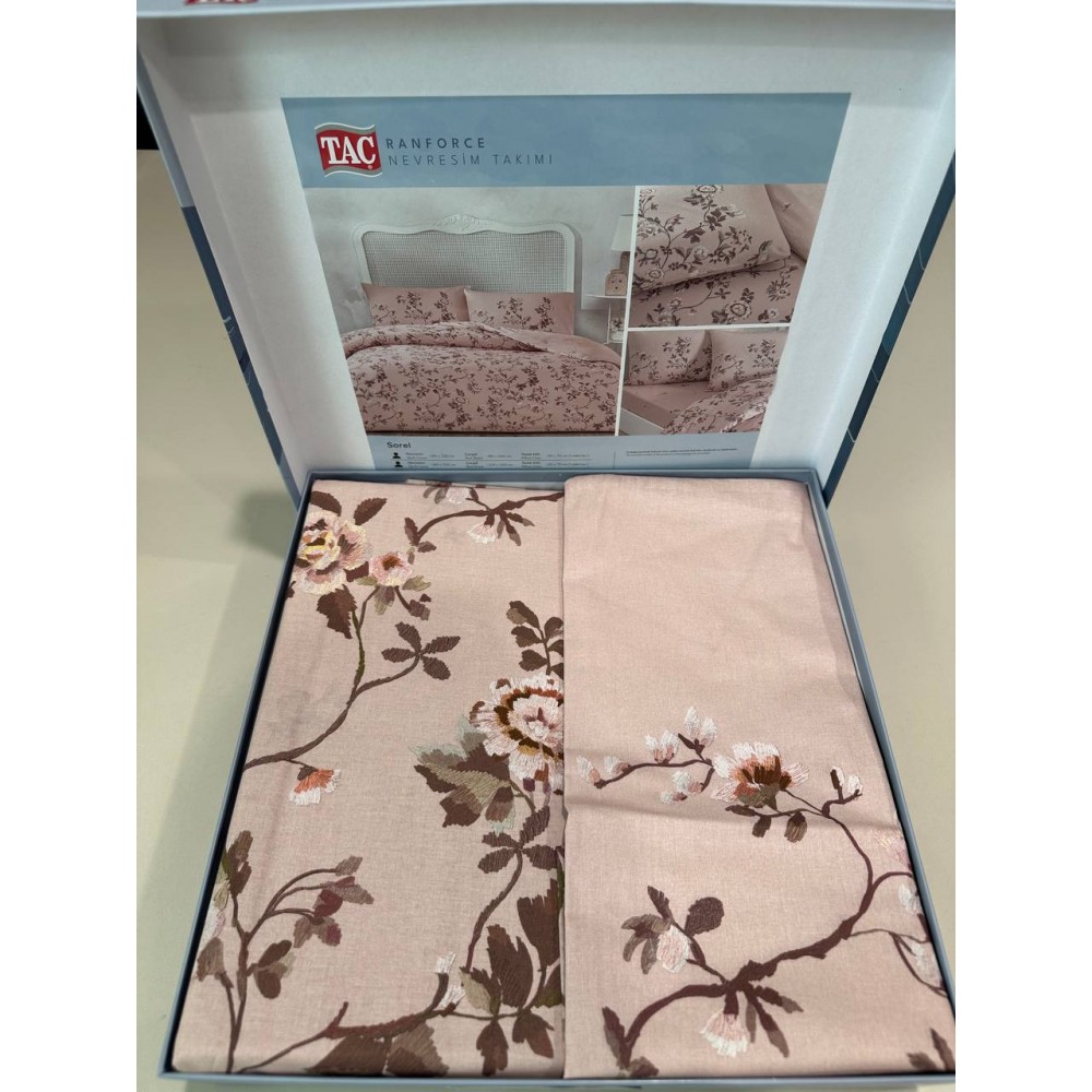 Турецкое постельное белье из коллекции TAC RANFORCE произведено из лучшего 100% хлопка. Ранфорс очень практичный, долговечный, гладкий и прочная, поскольку изготовлен из более тонких нитей. Постельное белье из ранфорса (материала полотняного плетения нитей) не требует специального ухода: легко стирается и гладится, приятное к телу и мягкое на ощупь, с отличными гигиеническими свойствами (летом создает прохладу, зимой-согревает), с изысканными и стильными дизайнами, отличающимися повышенной цветоустойчивостью. Комплектация изделия: пододеяльник 200х220 (на пуговицах), простыня (обычная) 240х260, наволочки 50х70 - 2 шт (без канта), плотность ткани 145 г/м2. Упаковка: подарочная коробка.